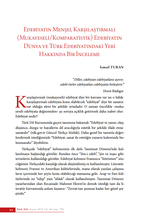 Genel ve Karşılaştırmalı Edebiyat Bilimi’nin