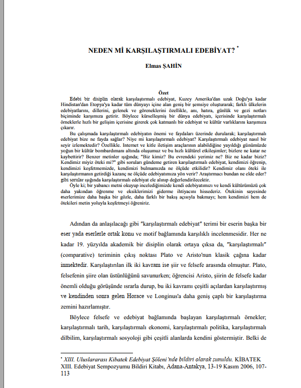 NEDEN Mİ KARŞILAŞTIRMALI EDEBİYAT?